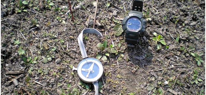 Проверка на точность довольно проста, легко проводится в полевых условиях и не требует много времени. Для ее проведения необходим сам компас, часы выставленные на местное время, отвес (например ветка от дерева, чем тоньше, тем лучше) и немного терпения. Величина погрешности компаса должна быть в пределах 15-20 минут местного времени.