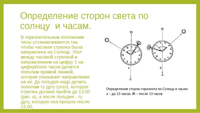 - При необходимости движения можно ориентироваться по сторонам света даже без компаса. Так, кора березы и сосны на северной стороне темнее, чем на южной, а стволы деревьев, камни, выступы скал гуще покрыты мхом и лишайниками.